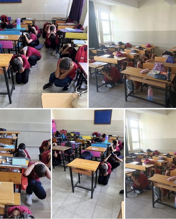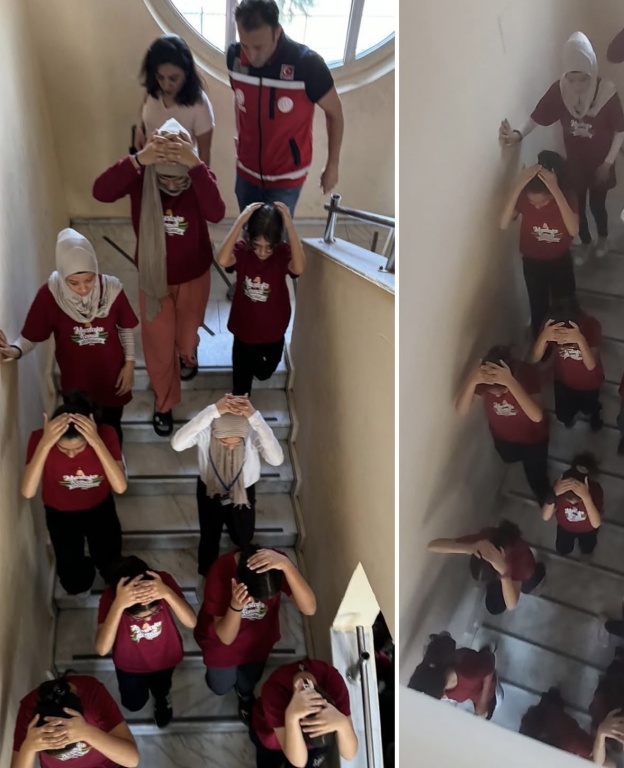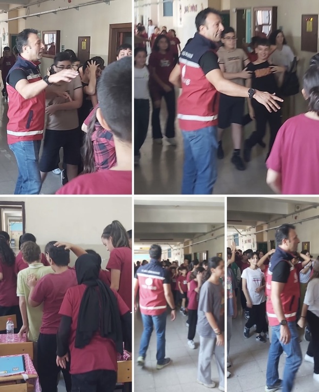 13 Ekim Dünya Afet Risklerinin Azaltilmasi Günü kapsaminda okullumuzda ögretmenler tarafindan afet öncesi, afet sirasi ve afet sonrasinda neler yapilmasi gerektigi hakkinda egitimler verilerek tatbikat gerçeklestirilmistir.